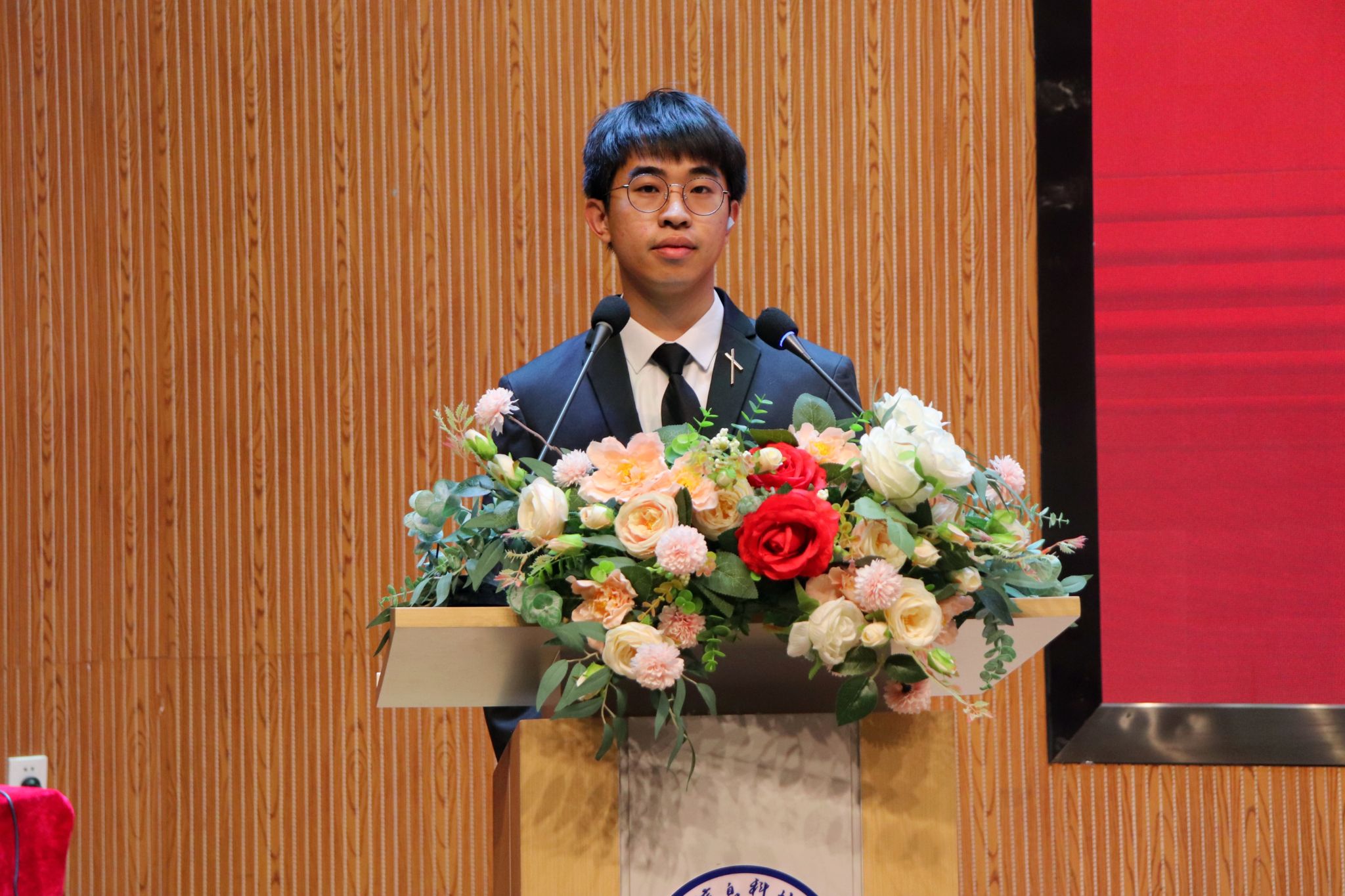 获奖学生代表叶圣河在发言中分享了参赛历程中的难忘点滴。他动情地表示,成绩的取得离不开学校提供的优质平台,更离不开指导教师们的悉心点拨与无私付出。同时他坦言,团队成员在备赛期间的默契协作、面对难题时的不离不弃以及反复打磨作品的执着坚持,是最终脱颖而出的关键。他承诺,将把竞赛中收获的经验与感悟融入日常学习,以更饱满的热情投入专业探索,不负荣誉、砥砺前行。